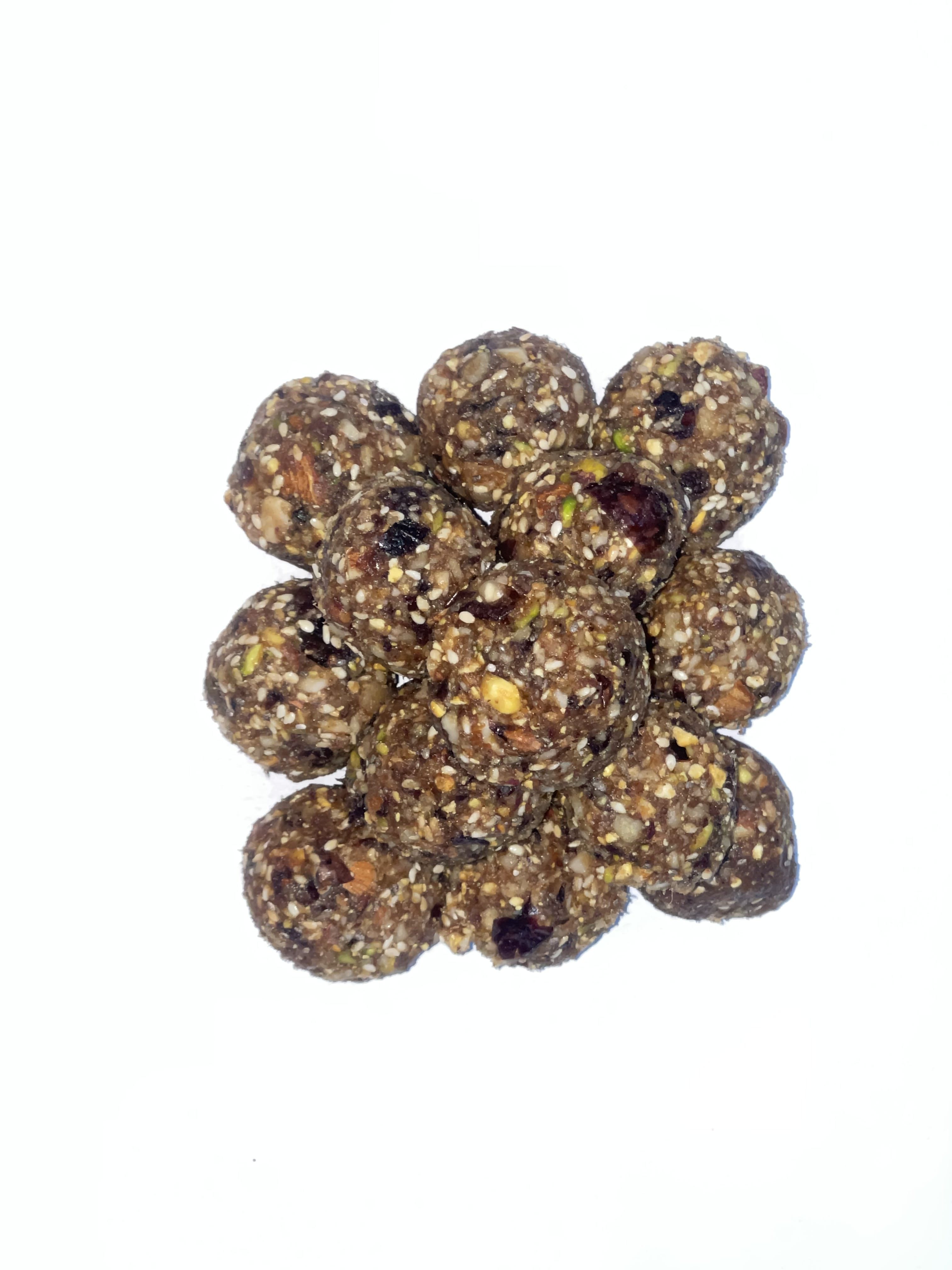NutShop.pk Signature Laddu — a handcrafted, nutrient-rich energy treat made with dates, til (sesame seeds), pure Desi ghee, almonds, walnuts, pistachios, and cashew nuts.